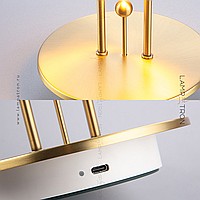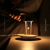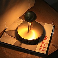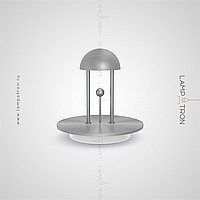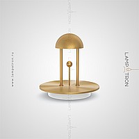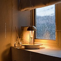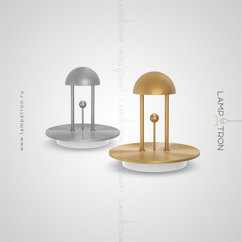 A table LED lamp with a hemisphere form and a decorative metal ball on a vertical rack