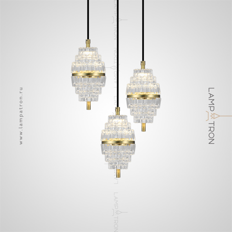 A designer pendant lamp with an elliptical glass of glass