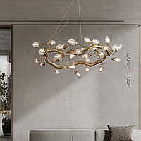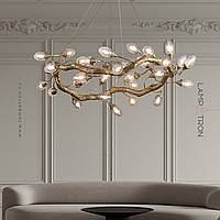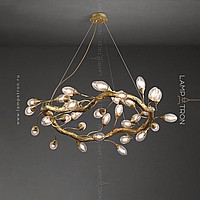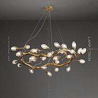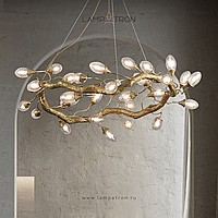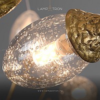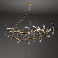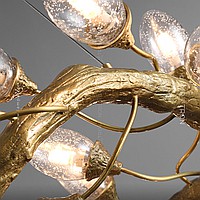 Ring chandelier with elliptic glasses of glass with the effect of air bubbles on a metal frame stylized under a tree