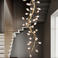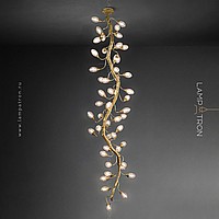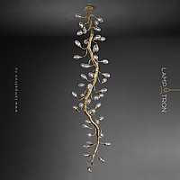 Chandelier with elliptical glass shades with the effect of air bubbles on an elongated metal frame, stylized as a tree