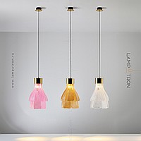 A series of pendant lamps with a multi-layer lampshade made of handmade glass elements