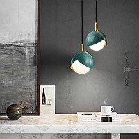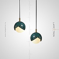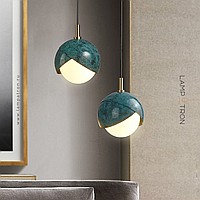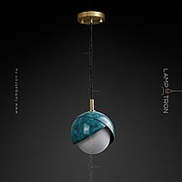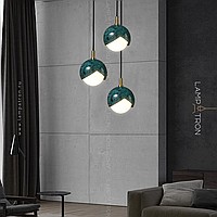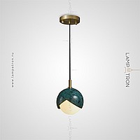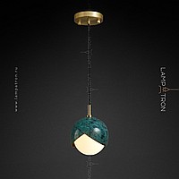 Suspended lamp in the form of a stylized flower bud with a matte glass ceiling in a case made of artistically painted metal