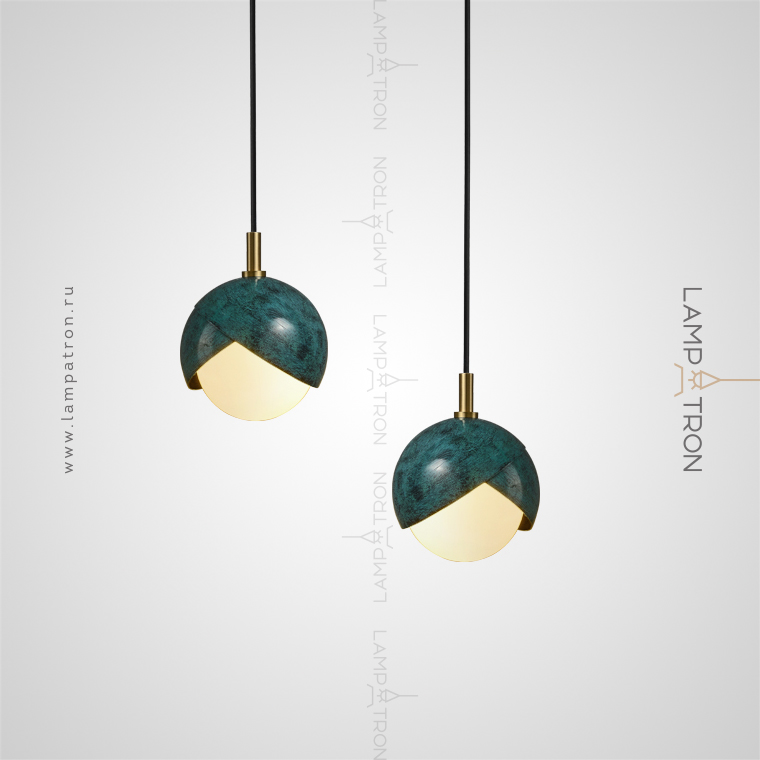 Suspended lamp in the form of a stylized flower bud with a matte glass ceiling in a case made of artistically painted metal