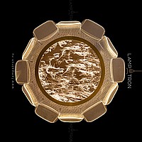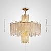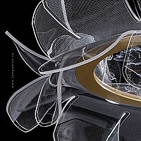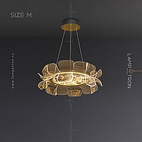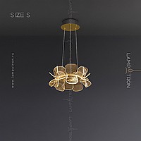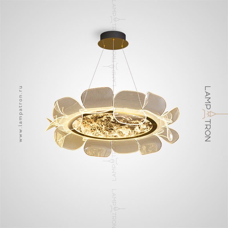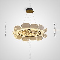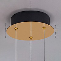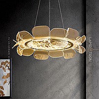 A series of designer LED chandeliers with scattering shifts along the contour of the disco-shaped case with a smoky effect