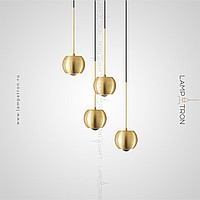 The finished combination of suspended LED lamps with two spherical ceilings equipped with optical lenses