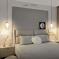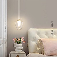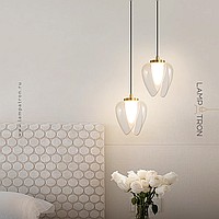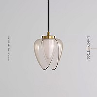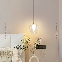Pendant lamp with a transparent decorative shade in the shape of a bud