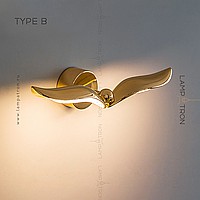 A series of wall -mounted LED lamps with curved plafones stylized under the wings of birds