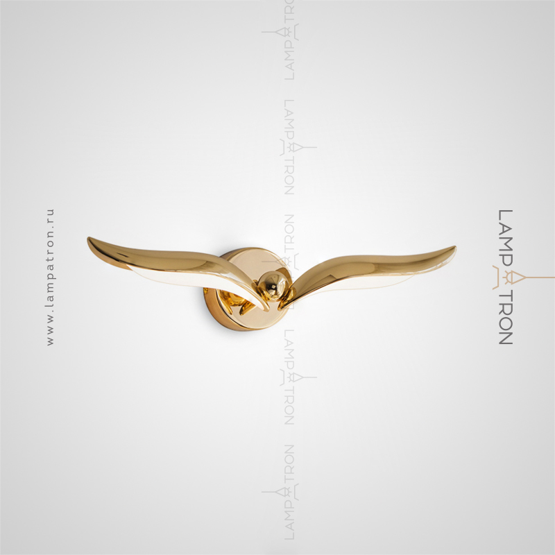 A series of wall -mounted LED lamps with curved plafones stylized under the wings of birds