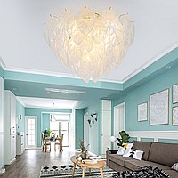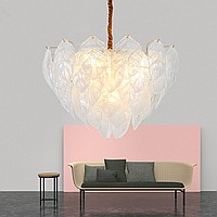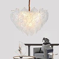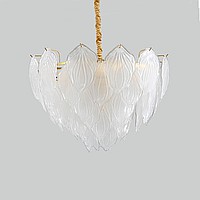 Chandelier in the style of postmodern with decor made of glass leaves