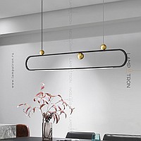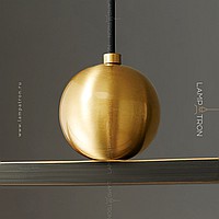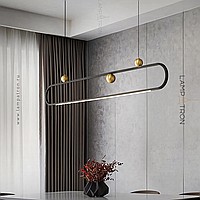 A series of rack lamps with decorative brass balls on a looped case with a lower LED lighting