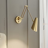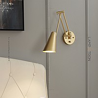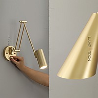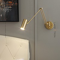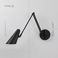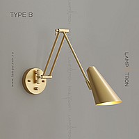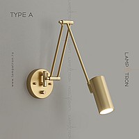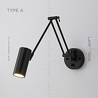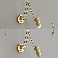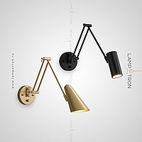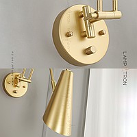 A series of wall lamps with cylindrical and cone -shaped rotary lamps on a double bracket