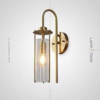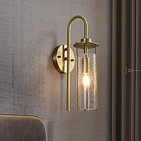A wall lamp with a cylindrical ceiling glass on a curved mug