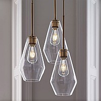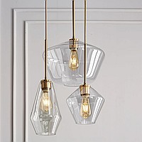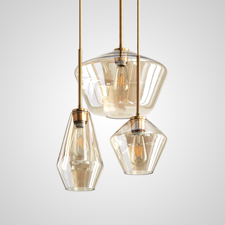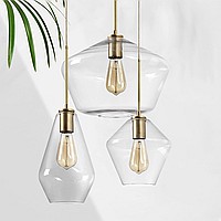A series of suspended lamps of 3 different shapes and 2 shades of glass in the style of Midsenturi Modern. Combine lamps in various configurations, because there is no much light and style.