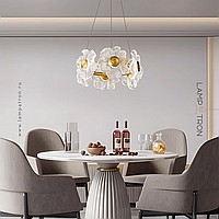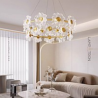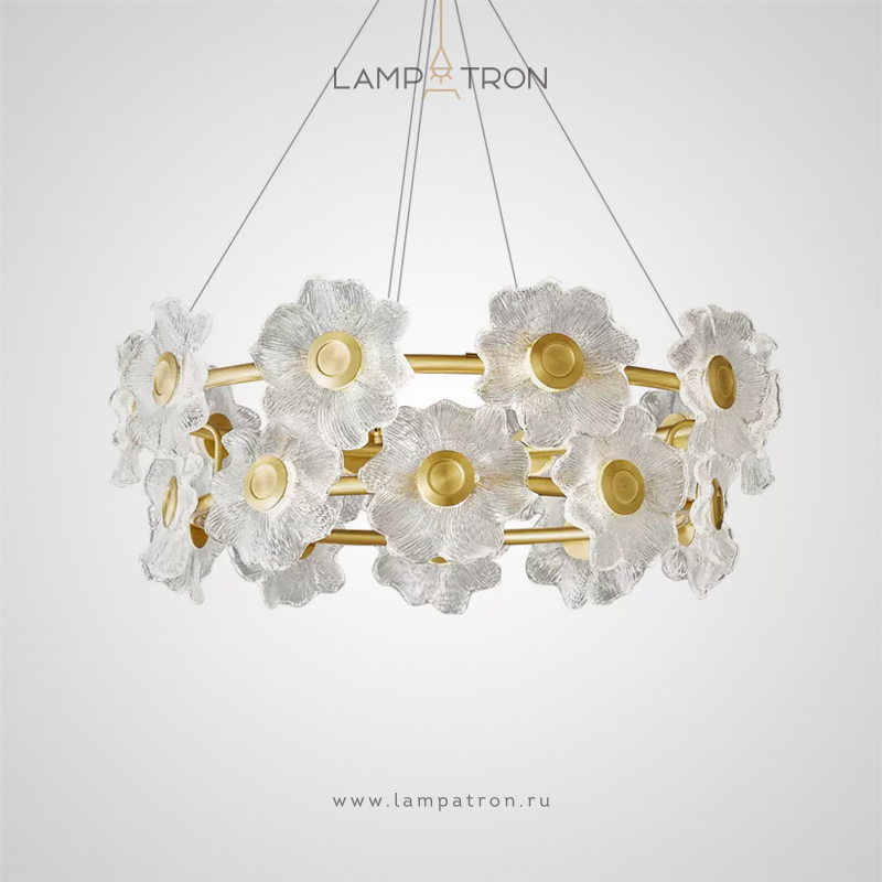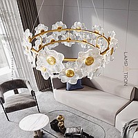 Series of Ring LED Chandeliers with Glass Shades in the Form of Flowers