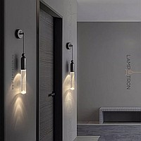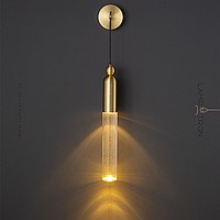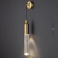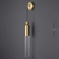 Wall-mounted LED sconces with transparent cylindrical body and spherical brass clip