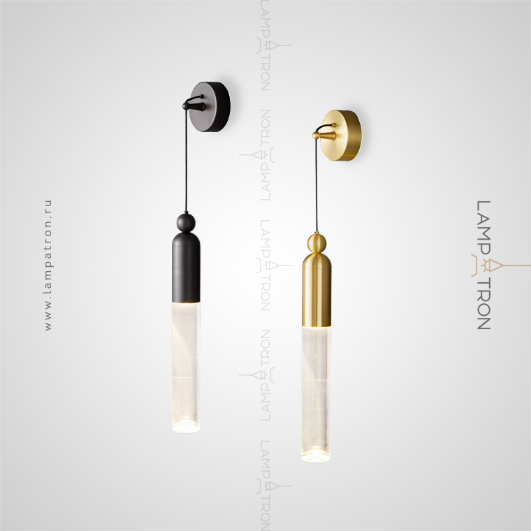 Wall-mounted LED sconces with transparent cylindrical body and spherical brass clip