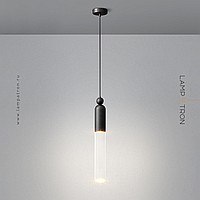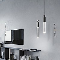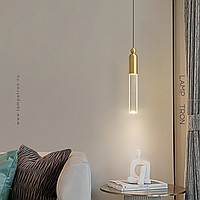 Modern style LED pendant light with cylindrical glass and brass body and spherical clip
