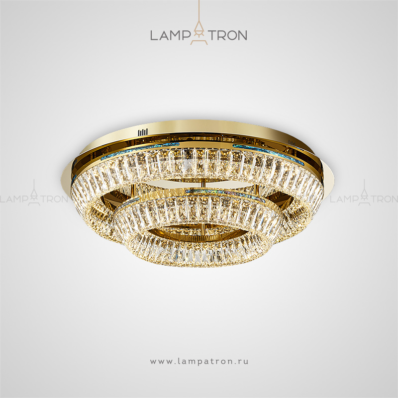 A series of ceiling multi -tiered chandeliers with a lampshade of crystal plates and rectangular inserts from a natural mother of pearl