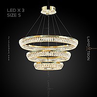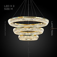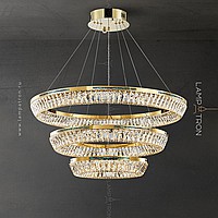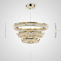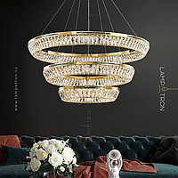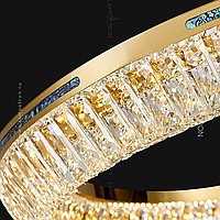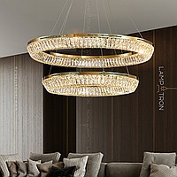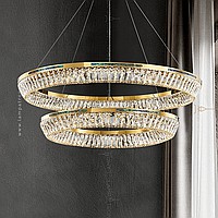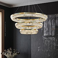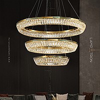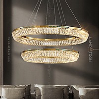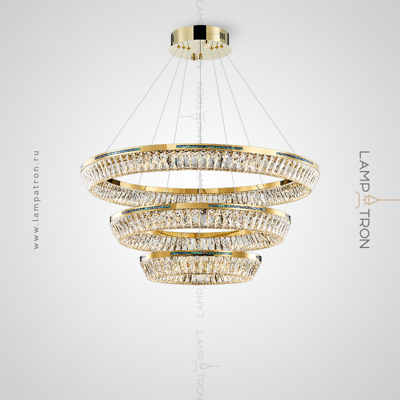A series of LED chandeliers with multifaceted crystal diffusers and mother -of -pearl inserts on the ring body