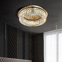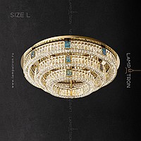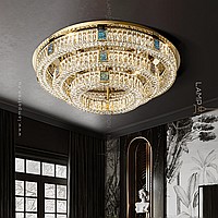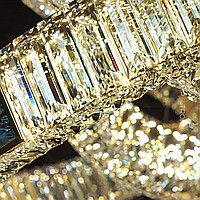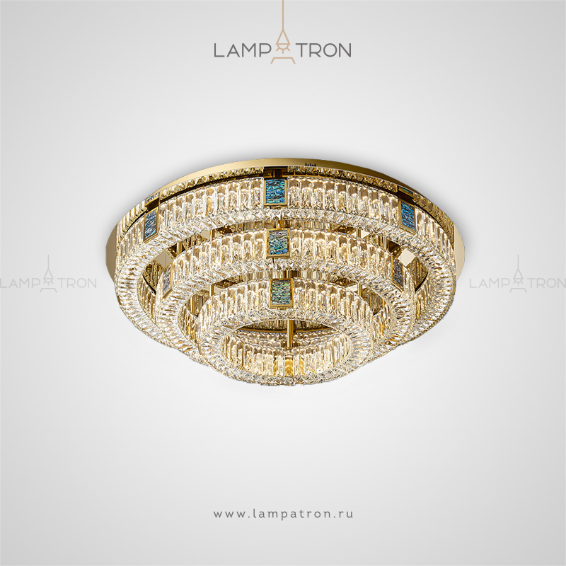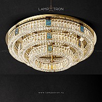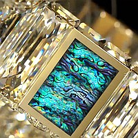 A series of ceiling multi -tiered chandeliers with a lampshade of crystal plates and rectangular inserts from a natural mother of pearl
