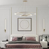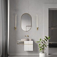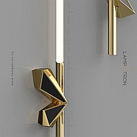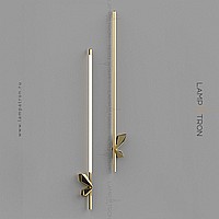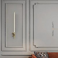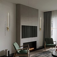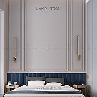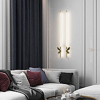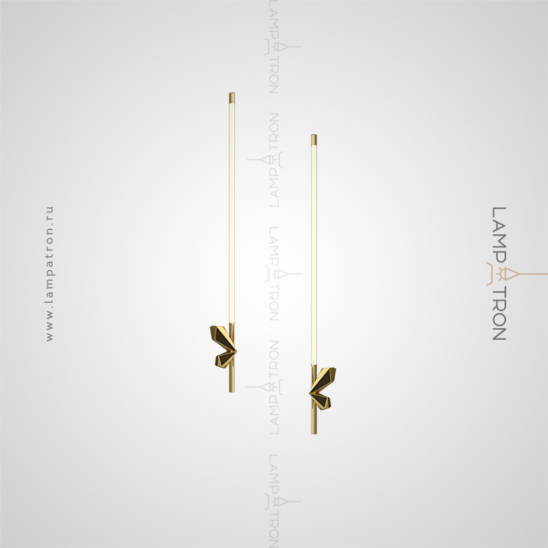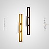 Paired sconces with an elongated cylindrical shade and figured fastening