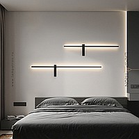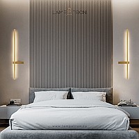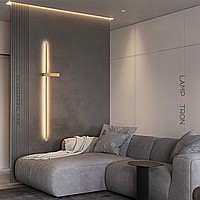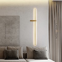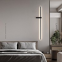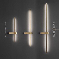 A series of twin wall lamps in the form of a luminous rod in real and blackened brass