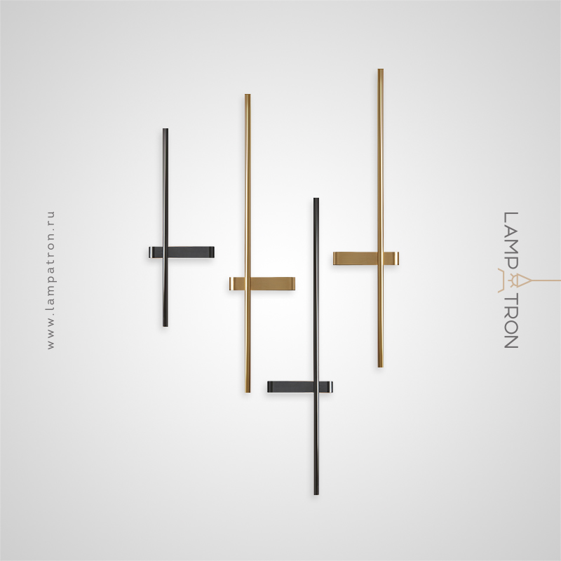 A series of twin wall lamps in the form of a luminous rod in real and blackened brass