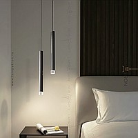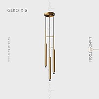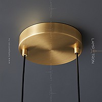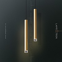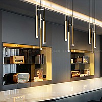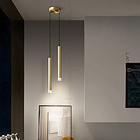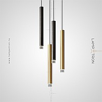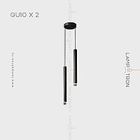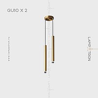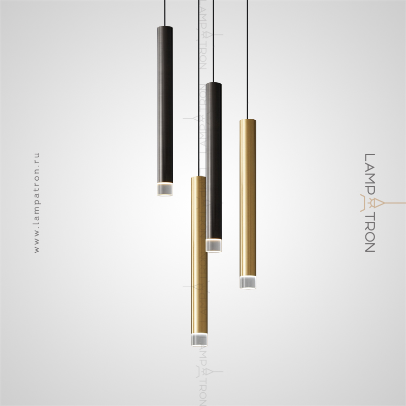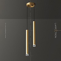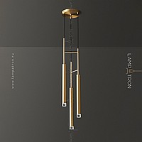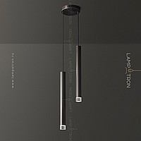 The finished combination of suspended lamps with two cylindrical glass ceilings on an elongated tubular frame