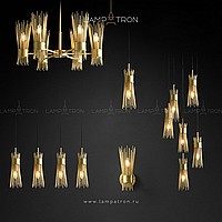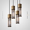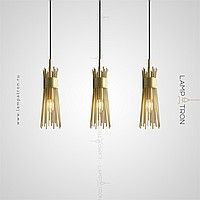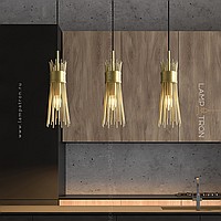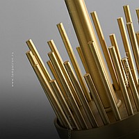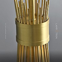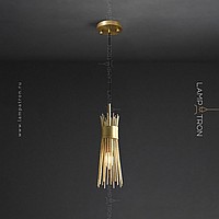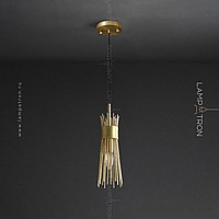 Designer suspended lamp with a brass lampshade in the form of a bundle of metal rods
