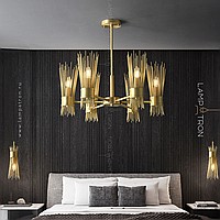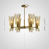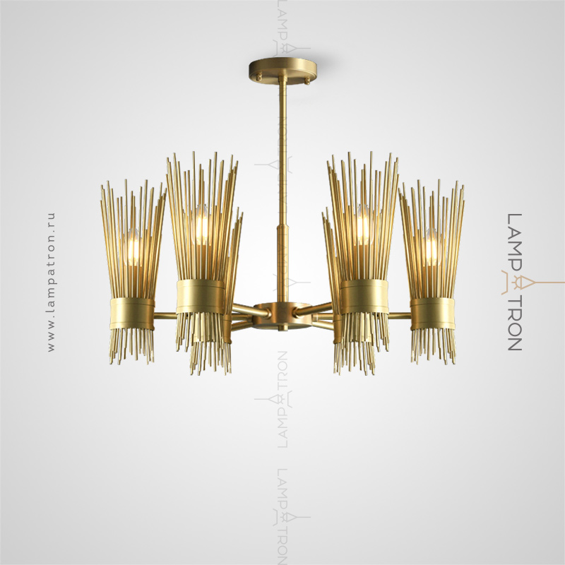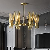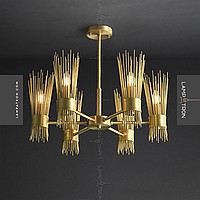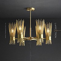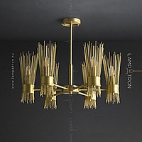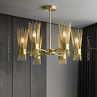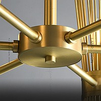 Designer chandelier on a radial frame with brass disperseers in the form of metal rods