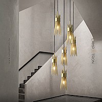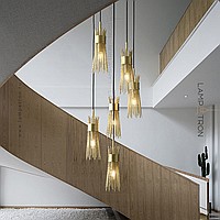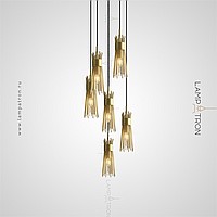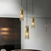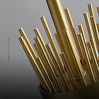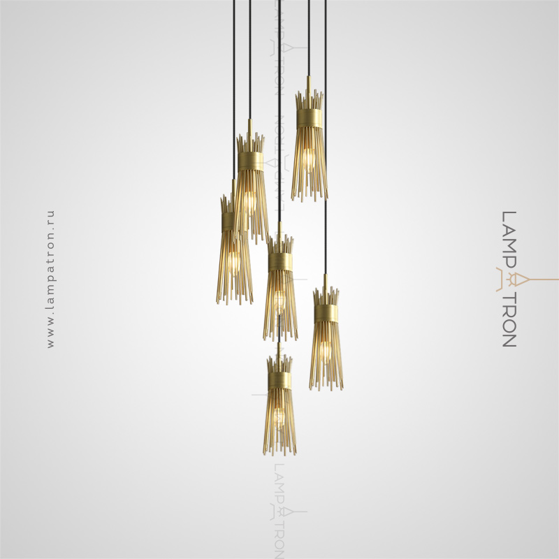 Ready -made combination of suspended lamps with brass lampshades made of metal rods