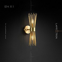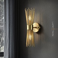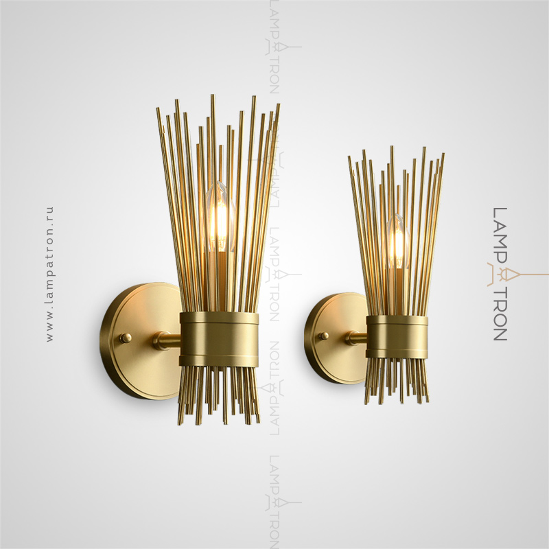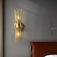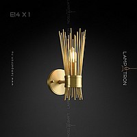 Wall lamp with a brass lampshade in the form of a bundle of metal rods