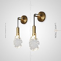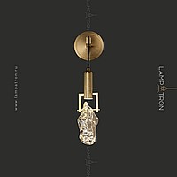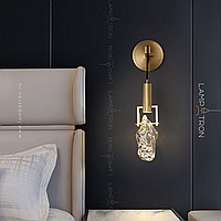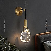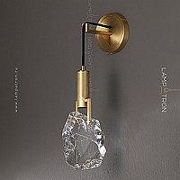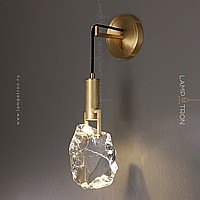 A wall lamp with a cylindrical ceiling and a dispersal in the form of an unused crystal on a metal rack