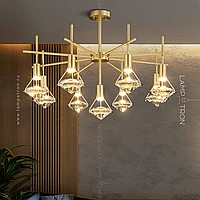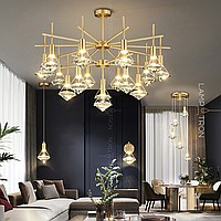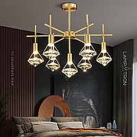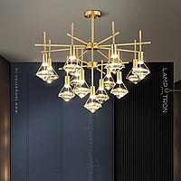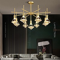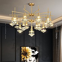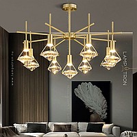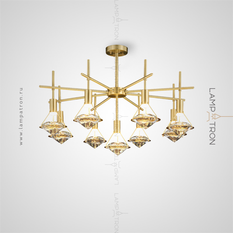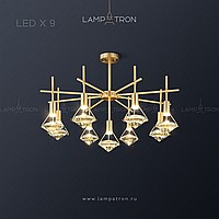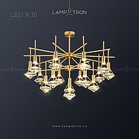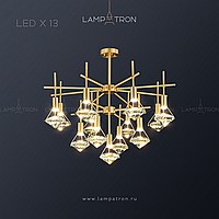 A series of LED chandeliers on a radiation frame with cylindrical plafones and crystal dialogue in the form of diamonds