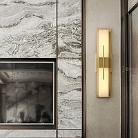 LED wall lamp with a rectangular marble ceiling inside a metal frame