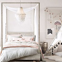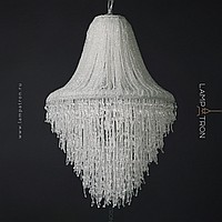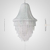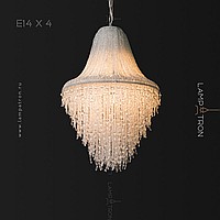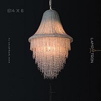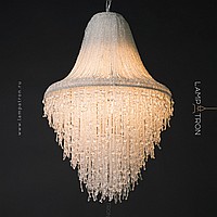 A series of chandeliers of a dome shape with a cascading lampshade of crystal pendants