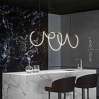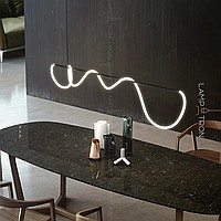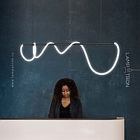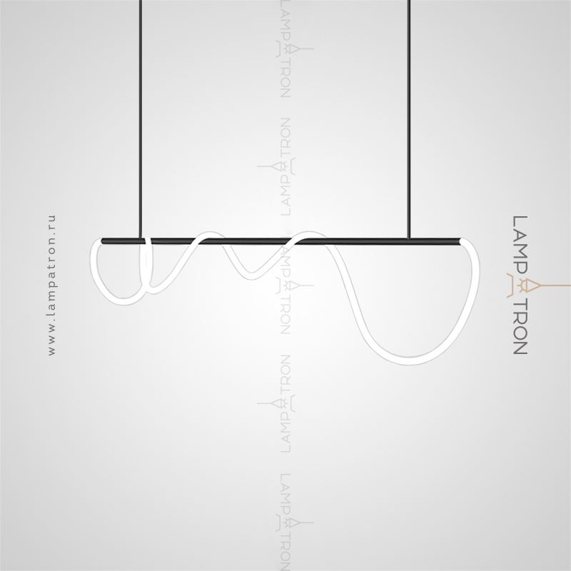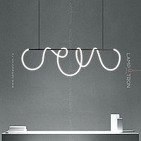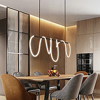 A series of rack and pinion luminaires with a shade in the form of a loosely wound flexible LED cord