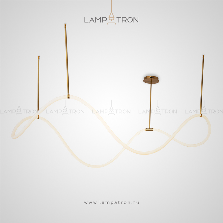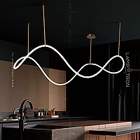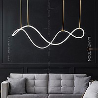 Pendant light in the form of a flexible LED cord on the ceiling posts
