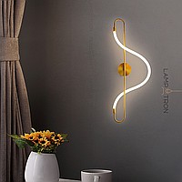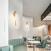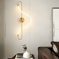A series of wall lights in the form of a combination of metal rod and flexible LED cord