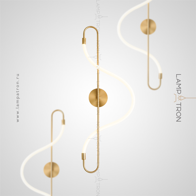 A series of wall lights in the form of a combination of metal rod and flexible LED cord