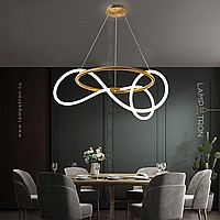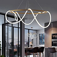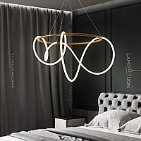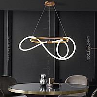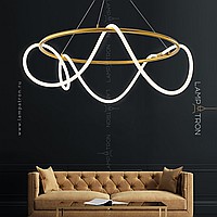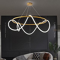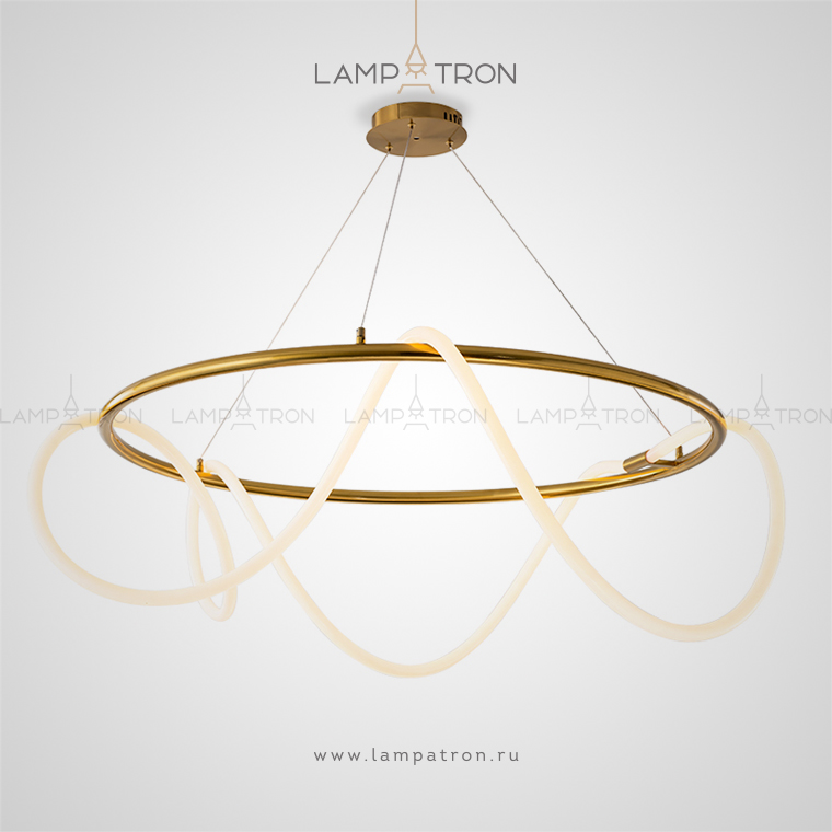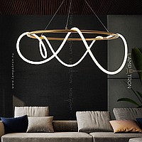 Hanging chandelier in the form of a ring, loosely wrapped with an LED cord