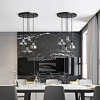 Combination of suspended lamps with ceiling