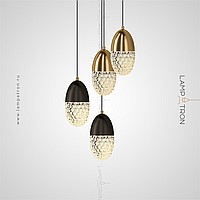 Suspended lamp with a suspended plafon of elliptical embossed glass