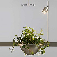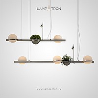 A series of LED row lamps with spherical shades and a flower pot in the shape of a hemisphere