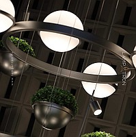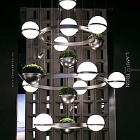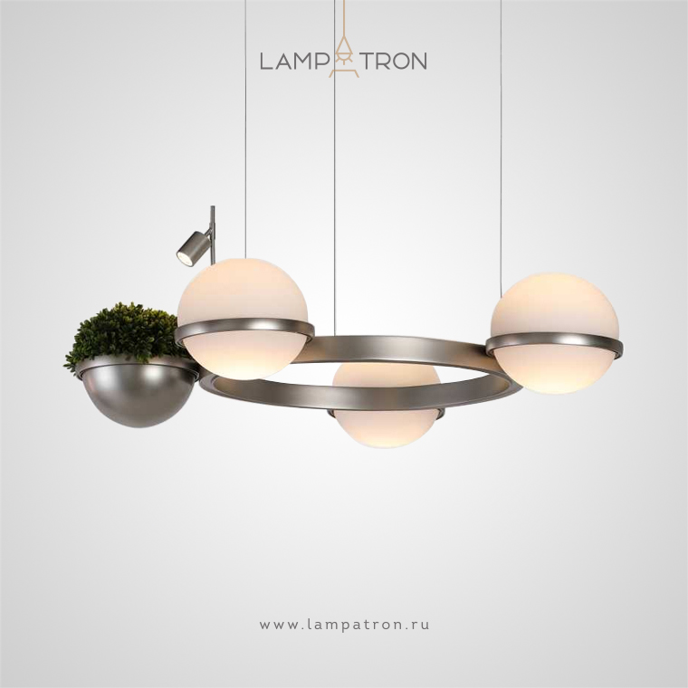 LED Ring Chandelier with Spherical Shades and Flower Pots in the Shape of a Hemispheric with Spot Lighting