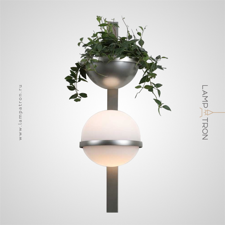 LED LED wall lamp with spherical shade and flower pot in the shape of a hemisphere