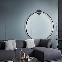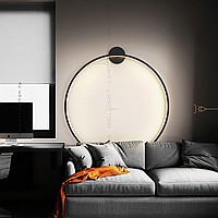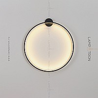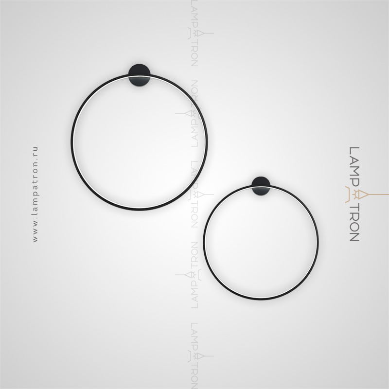 A series of wall lamps in the form of black metal rings of different diameters with LED lighting along the contour of the case with round mount