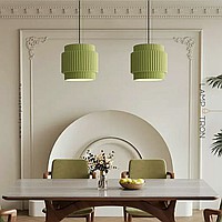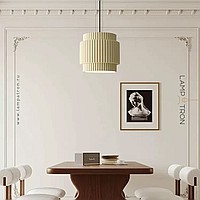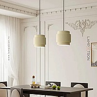 Oriental-style pendant lamp with rattan palm double deck lampshade