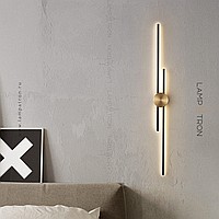 A series of wall LED lamps in the form of a composition of two multilevel luminous rods