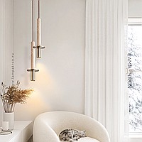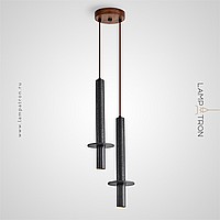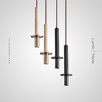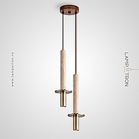 Ready-made combination of pendant luminaires with a cylindrical body made of lava stone and travertine with a disc-shaped diffuser